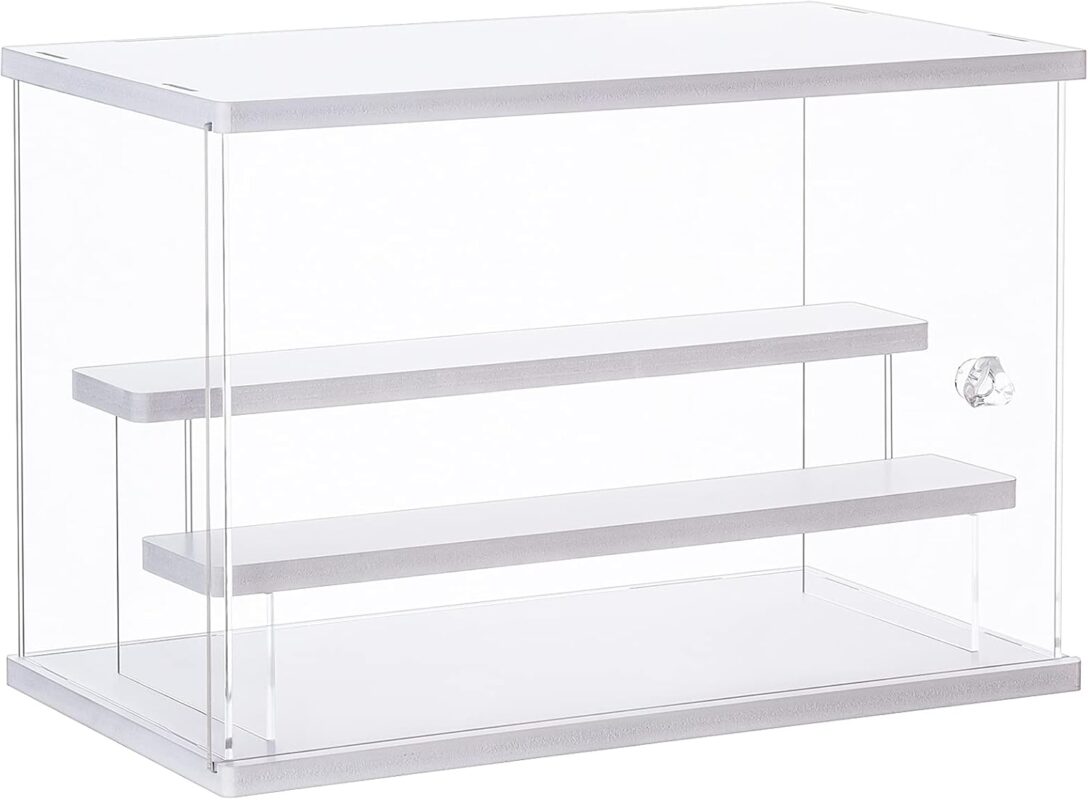 Acrylic Display Case Clear Display Storage Box Countertop Cube for Collectibles, Action Figures, Miniature Figurines Dustproof Protection Storage & Organizing (White, 12.4x7x8.6in)