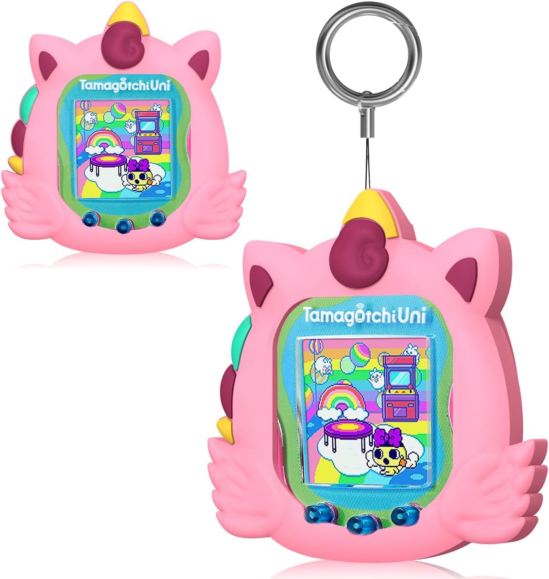 BEARDDO Silicone Case Compatible with Tamagotchi Uni Case, Cute Cartoon Pink Virtual Pet Game Machine Protector Cover for Tamagotchi Uni Accessories with Ring Lanyard (Pink)