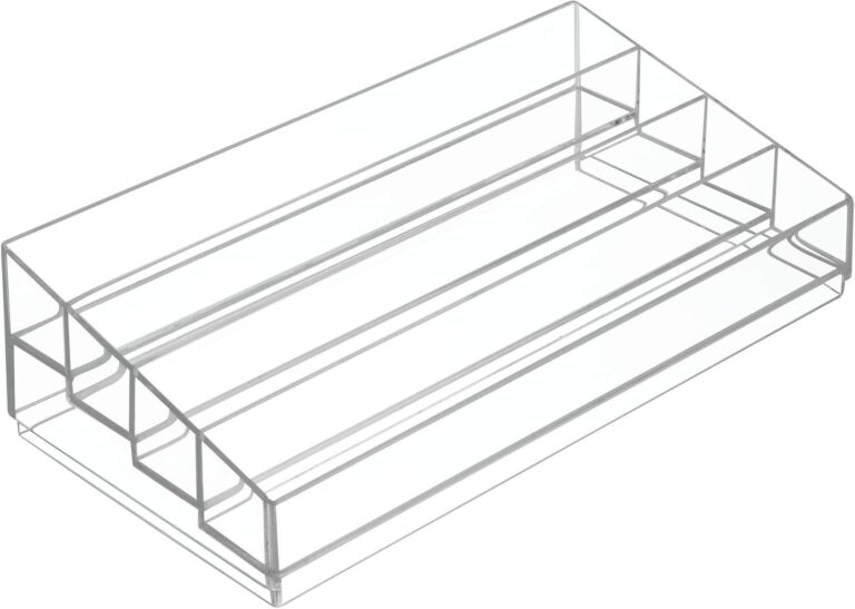 The iDesign Clarity Collection Tiered Nail Polish Holder is a great way to keep makeup, nail polish, and other cosmetics neat and tidy at the bathroom vanity, countertop, dressing table, or inside a cabinet. The cosmetic makeup organizer features four tiered shelves to vertically store necessities such as nail polish, hair accessories, blush, eyeshadow, lipstick, bronzer, highlighter, and brow palettes. It is also great for organizing small items such as note pads and other office supplies. Made of durable plastic, it has a tiered design that allows you to store taller items in the back and smaller accessories in the front for quick visibility and easy access. The nail polish storage organizer measures 12.75 IN X 6.5IN X 3.75 IN, perfect for adding instant organization to compact spaces in your home. With iDesign, you can live simply every day.