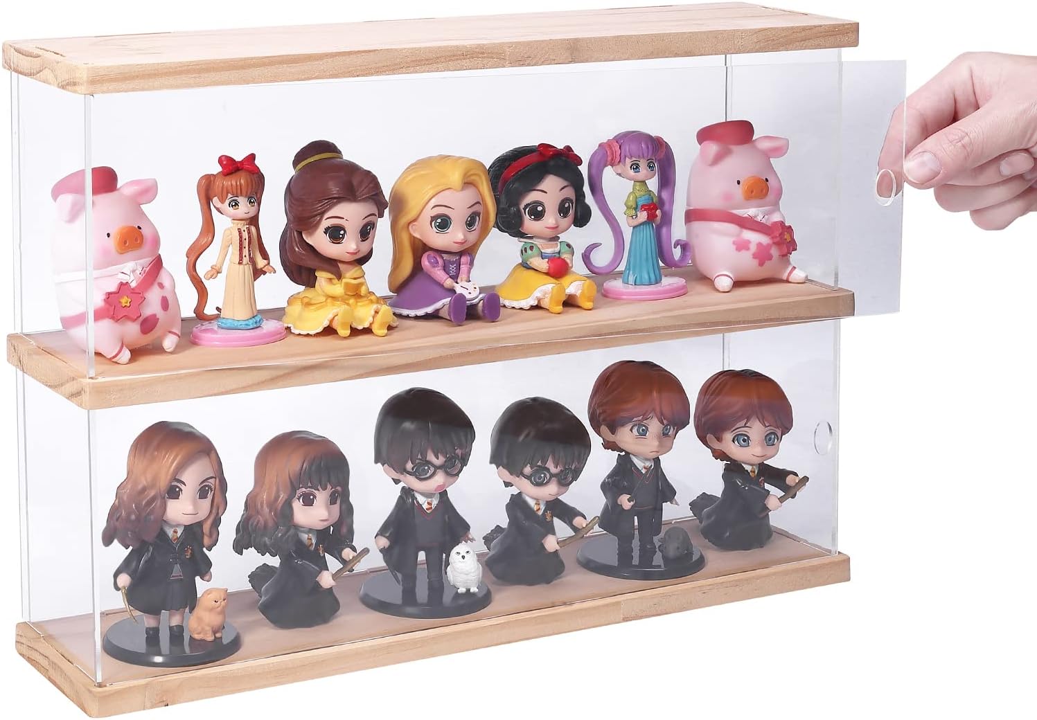 【Clear Showcase】Features 2-Tiers case and a side-hung door on each layer. Firm to stackable.