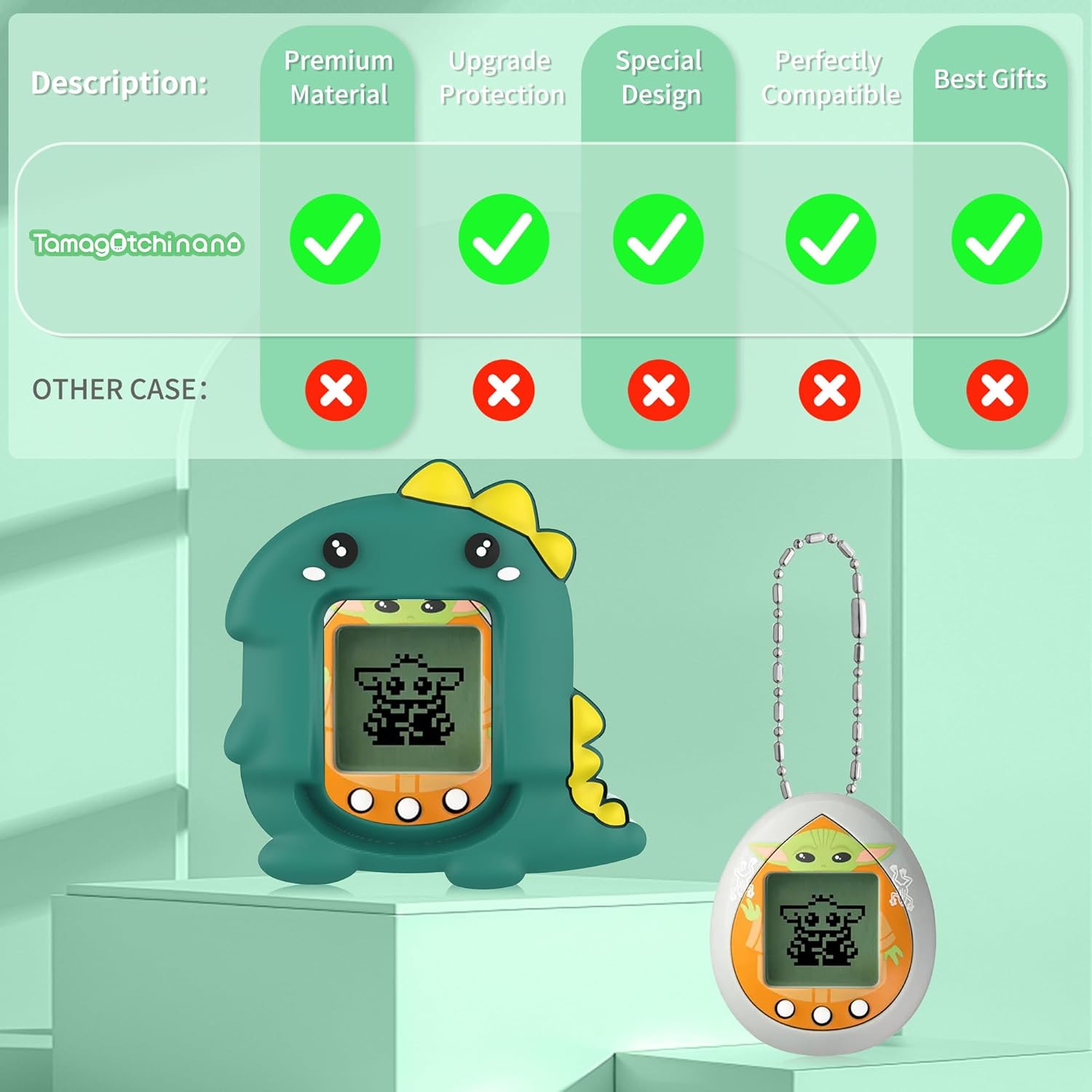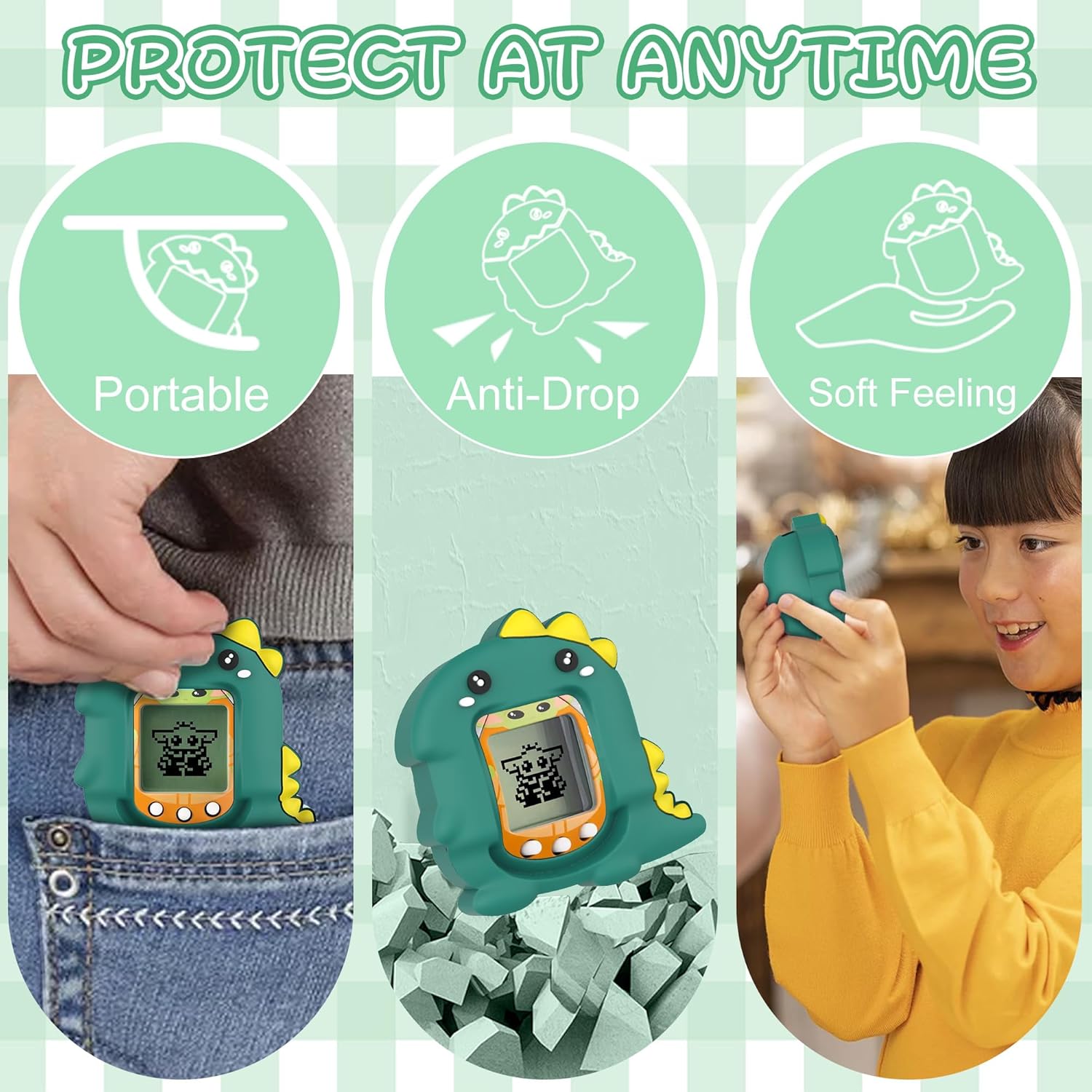 Compatible with Tamagotchi Nano Silicone Case, Cute Dinosaur Pattern Protective Cover Case Suitable for Tamagotchi Nano Accessories for Kids, green