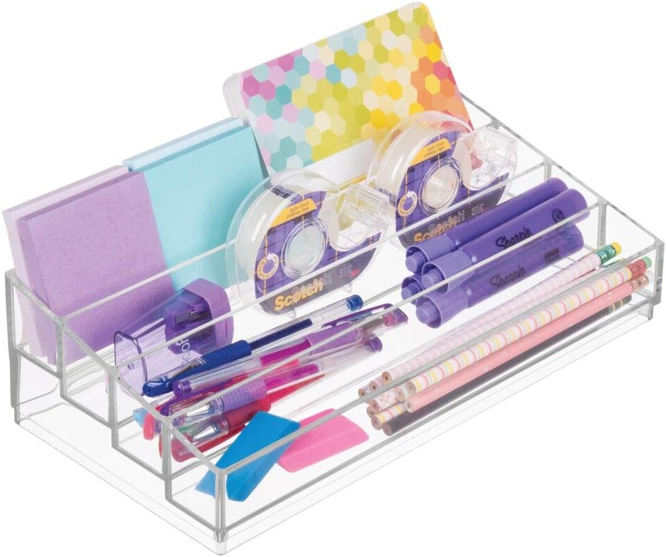 COSMETIC ORGANIZER: The iDesign Tiered Organizer has divided sections that store daily necessities vertically in one place. Great for hair accessories, cosmetics, and nail polish storage. Also great for organizing small items such as office supplies.