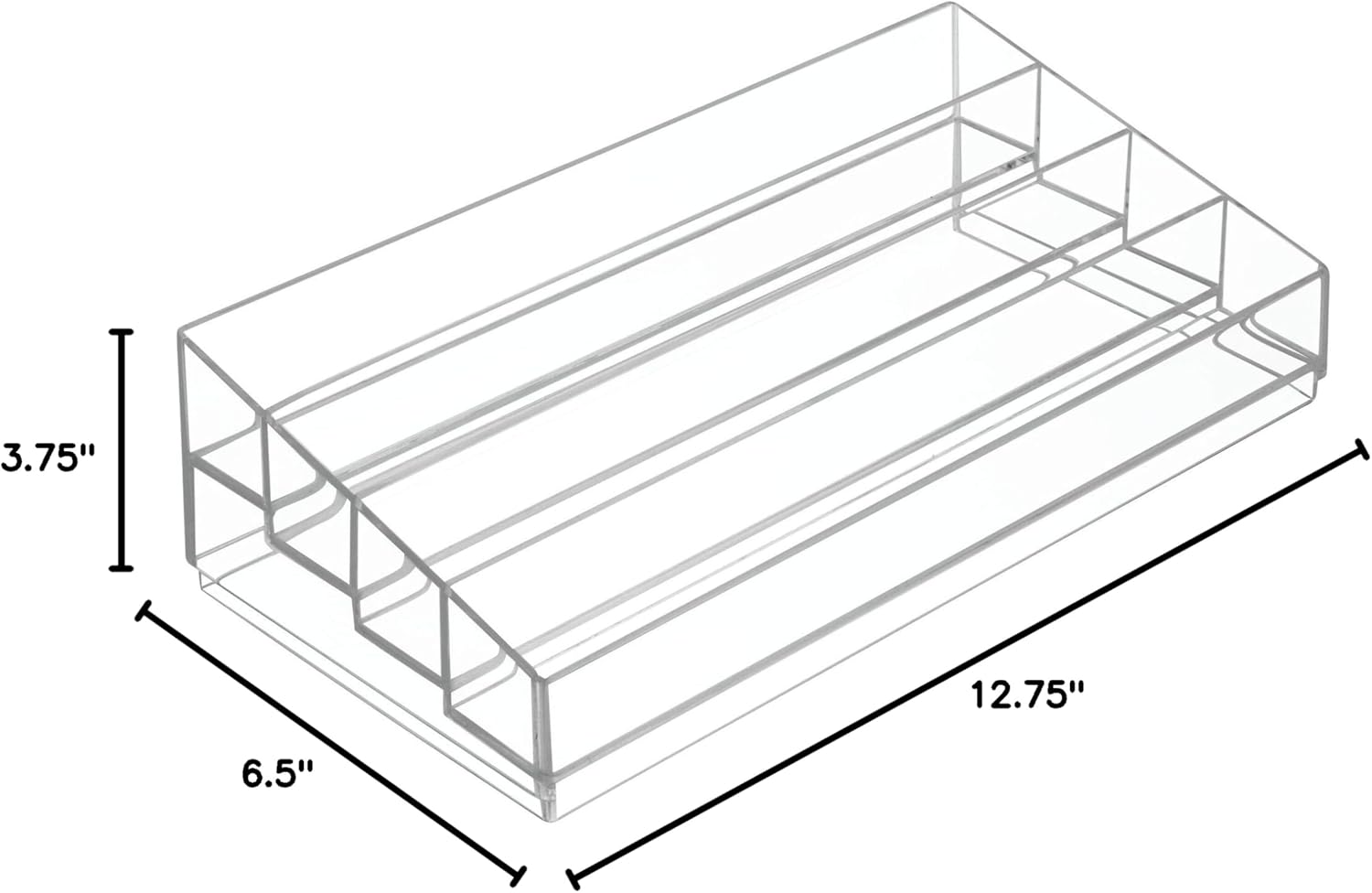 The iDesign Clarity Collection Tiered Nail Polish Holder is a great way to keep makeup, nail polish, and other cosmetics neat and tidy at the bathroom vanity, countertop, dressing table, or inside a cabinet. The cosmetic makeup organizer features four tiered shelves to vertically store necessities such as nail polish, hair accessories, blush, eyeshadow, lipstick, bronzer, highlighter, and brow palettes. It is also great for organizing small items such as note pads and other office supplies. Made of durable plastic, it has a tiered design that allows you to store taller items in the back and smaller accessories in the front for quick visibility and easy access. The nail polish storage organizer measures 12.75 IN X 6.5IN X 3.75 IN, perfect for adding instant organization to compact spaces in your home. With iDesign, you can live simply every day.