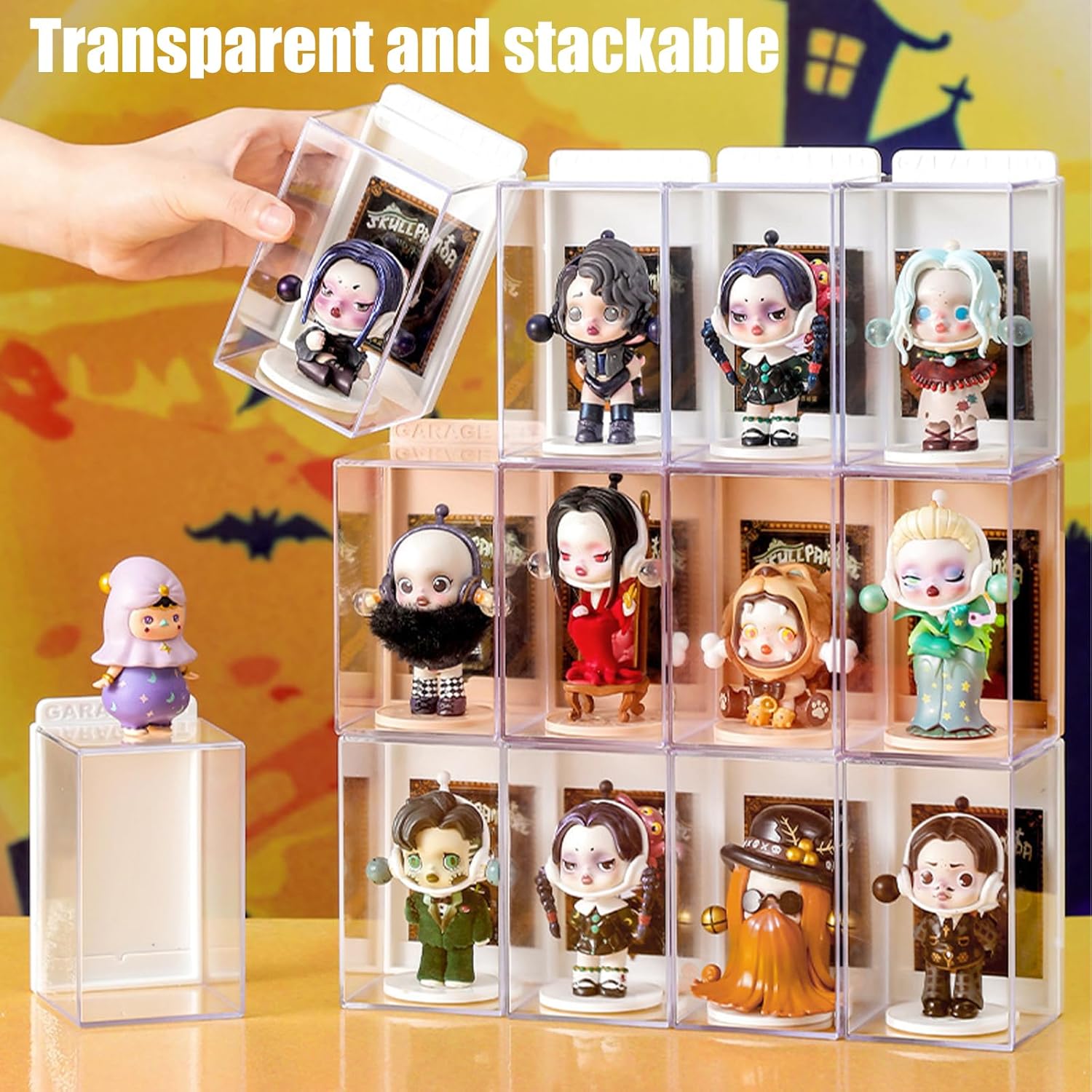Figures Display Box, Clear Figures Display Case With ID Card Slot, Stackable Doll Display Stand for Lego Collectibles Action Figures
